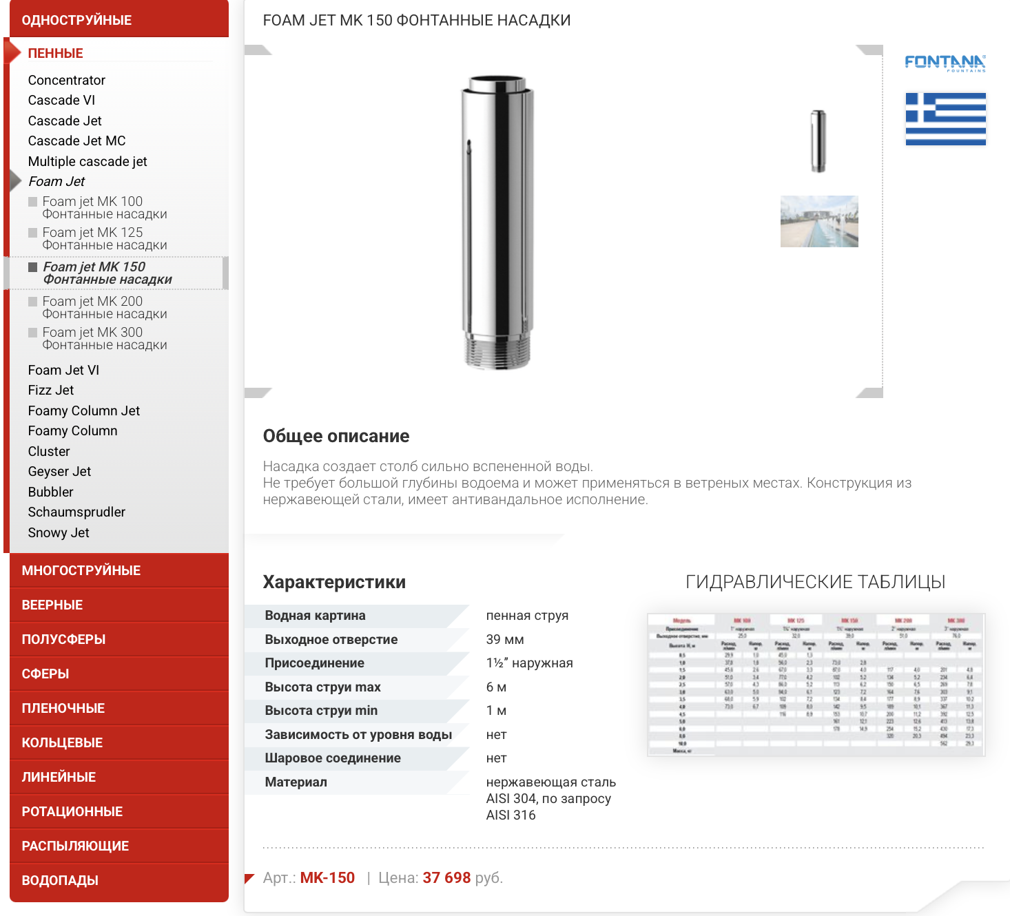 находим вот такие православные насадки на сайте поставщика оборудования с вот такими гидравлическими характеристиками